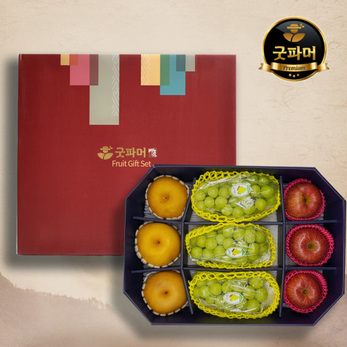 - [굿파머] 8각 샤인 3종세트 실속 1호 (4.6kg/샤인머스켓3+사과3+배3)