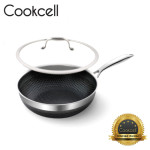 - [Cookcell] 쿡셀 통3중 더블 세라믹 코팅 블랙에디션 IH 궁중팬 28cm + 유리뚜껑 28cm 2종