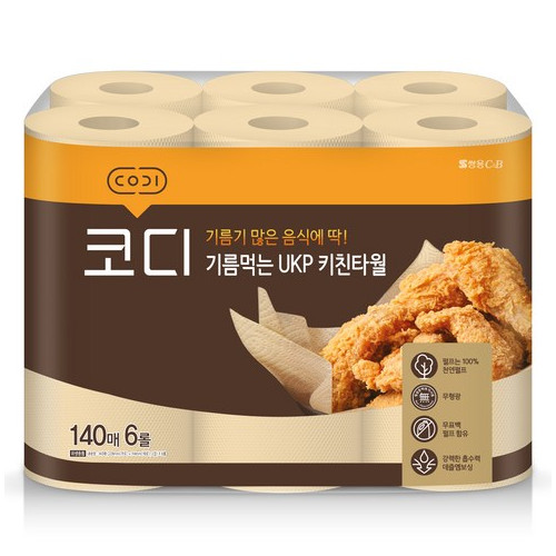 - 코디 기름먹는 UKP 천연펄프 키친타올, 140매, 6롤