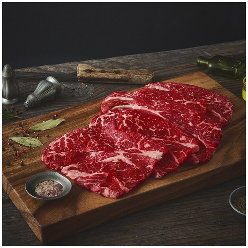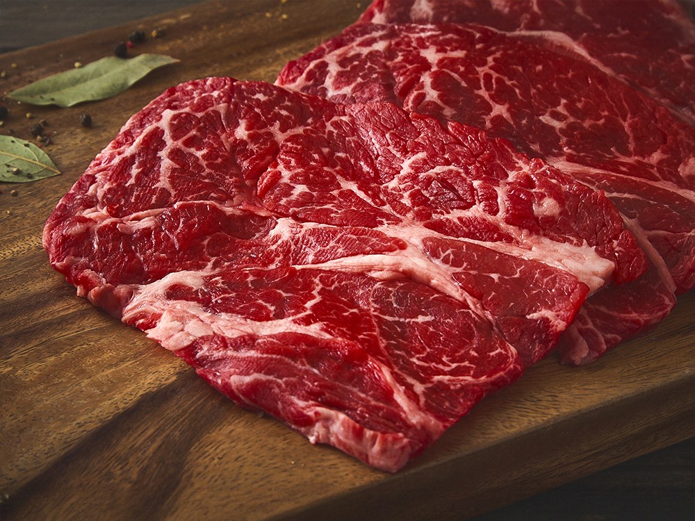 소의 목심과 등심이 연결되는 부위, 척아이롤. 특유의 육향과 맛이 진해 주로 구이용으로 제격인데요. 섬세한 마블링이 전체적으로 풍성하게 퍼져있어 고소한 풍미가 일품이죠. 레어, 혹은 미디엄 레어로 조리해 풍부한 육즙을 만끽해 보세요. 향긋한 와인을 한 잔 곁들여도 좋답니다.