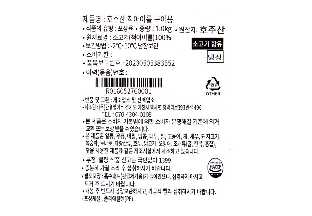 - 호주산 척아이롤 구이용 (냉장), 1kg, 1개