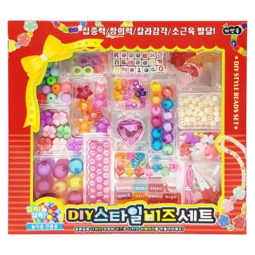 - 아가플러스 프리티 비즈 DIY 세트, 비즈 15종 + 공예용 실 + 아세사리 부품 + 미니 가위, 1개