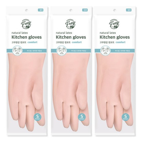 - 프로그 라텍스 컴포트 고무장갑 베이비핑크 × 소(S) × 3세트
