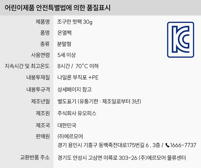 | 안전기준적합확인신고번호 또는 안전확인대상생활화학제품승인번호 | 상품페이지 참고 |