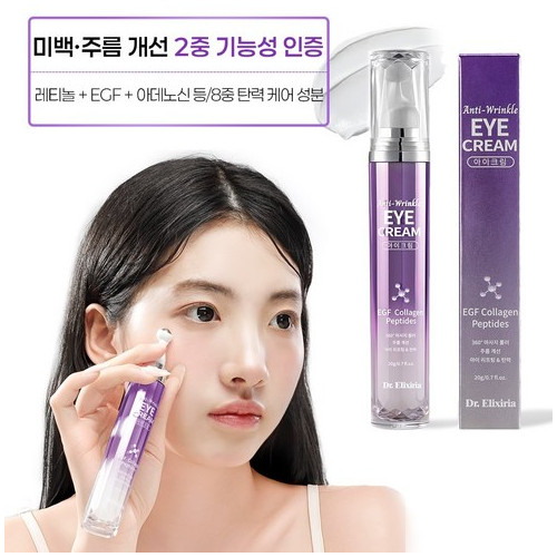 - 디알엘릭사 주름 개선 아이크림 콜라겐 EGF 펩타이드 영양 미백 탄력 케어 눈가 눈밑 주름 리프팅 롤링 아이 세럼, 1개, 20g