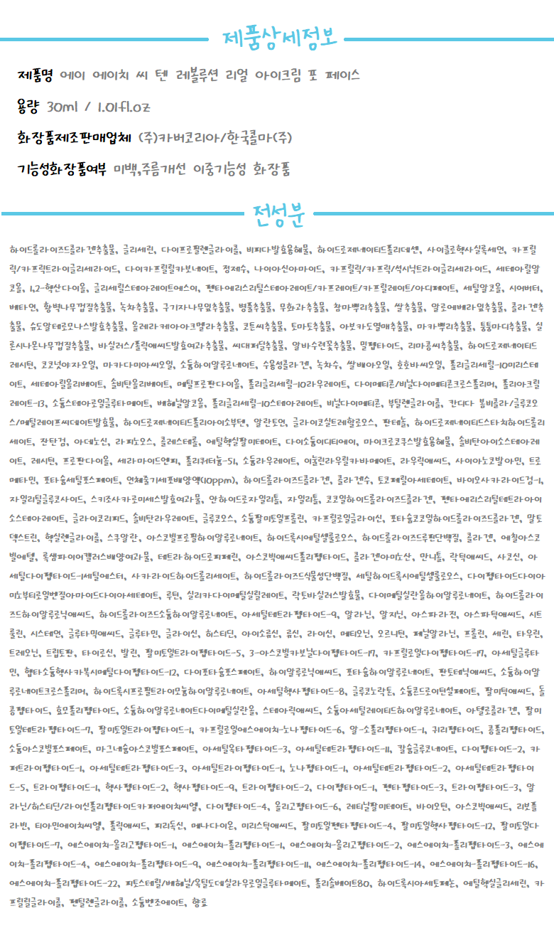 - AHC 텐 레볼루션 리얼 아이크림 포 페이스, 30ml, 1개