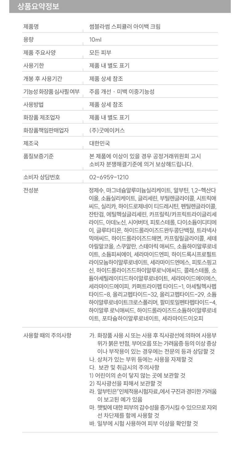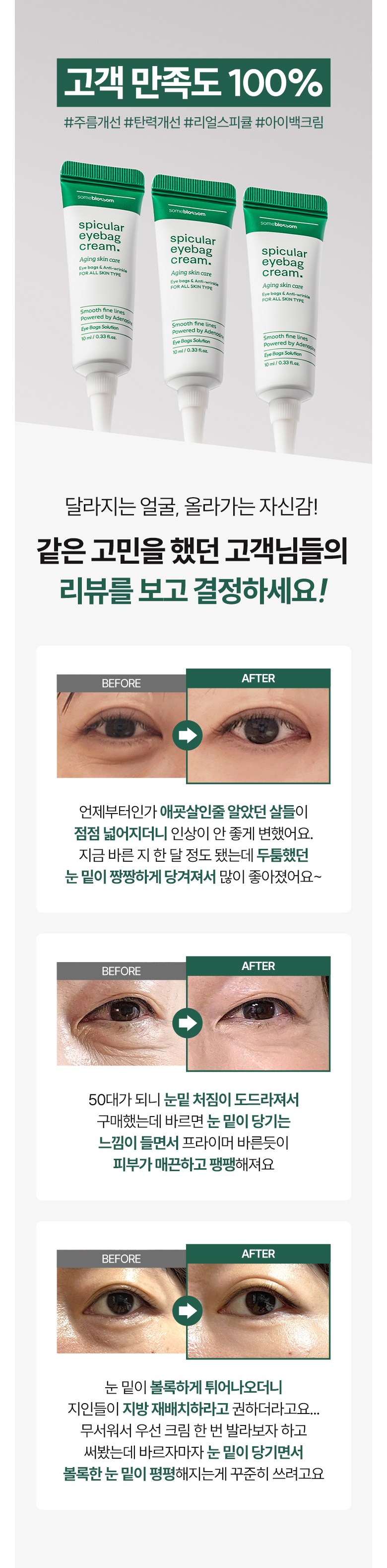 - 썸블라썸 눈밑꺼짐 다크서클 주름 탄력 볼륨 리프팅 스피큘러 아이백 크림, 2개, 10ml