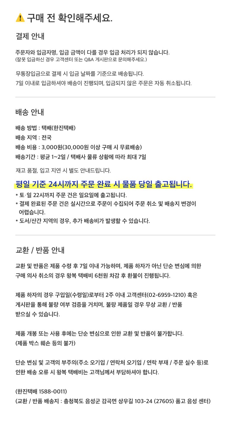 | 사용할 때 주의사항 | 상품페이지 참고 |