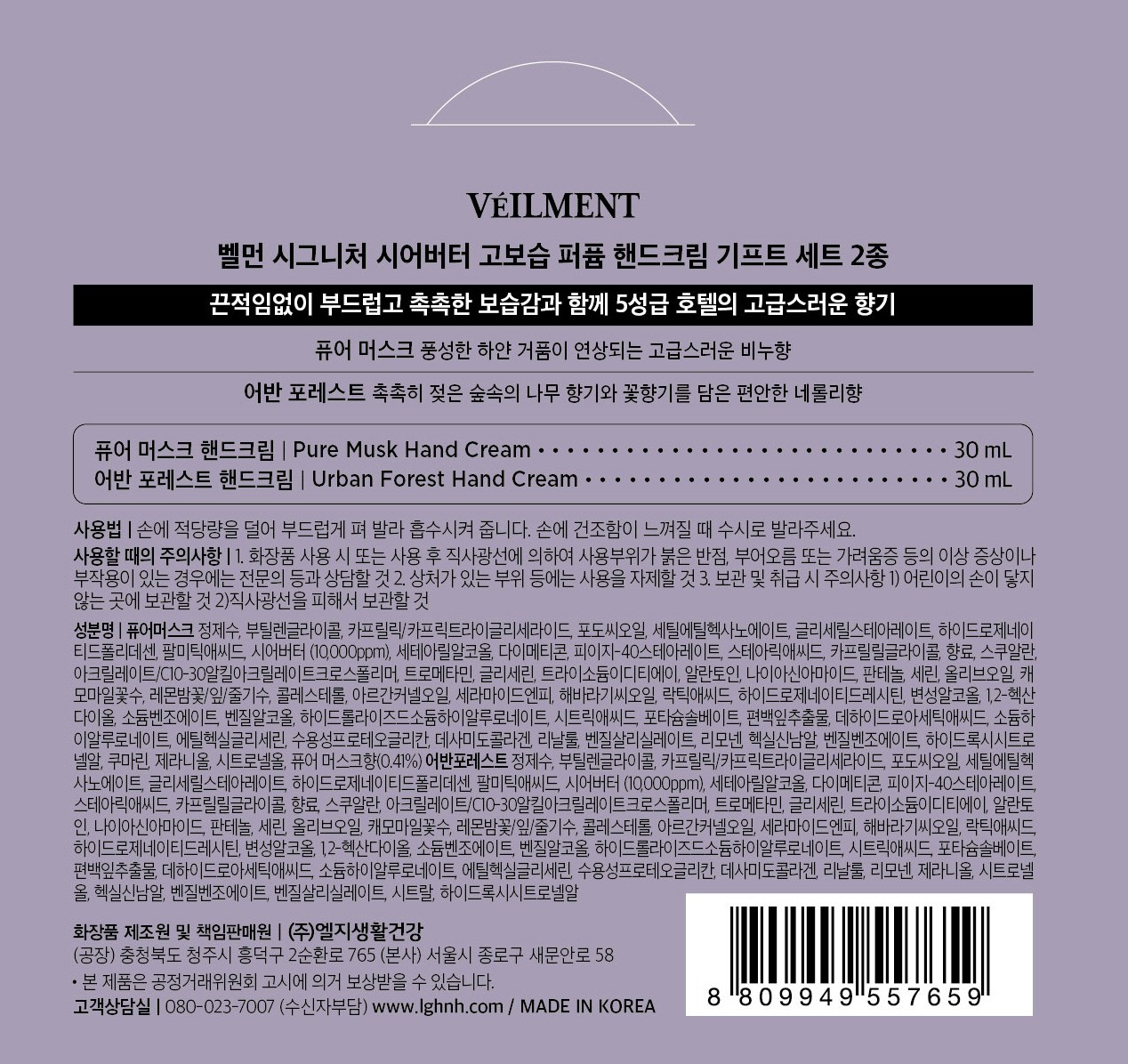 - 벨먼 시그니처 시어버터 고보습 퍼퓸 핸드크림 퓨어 머스크 + 어반 포레스트 기프트 2종 세트, 1개