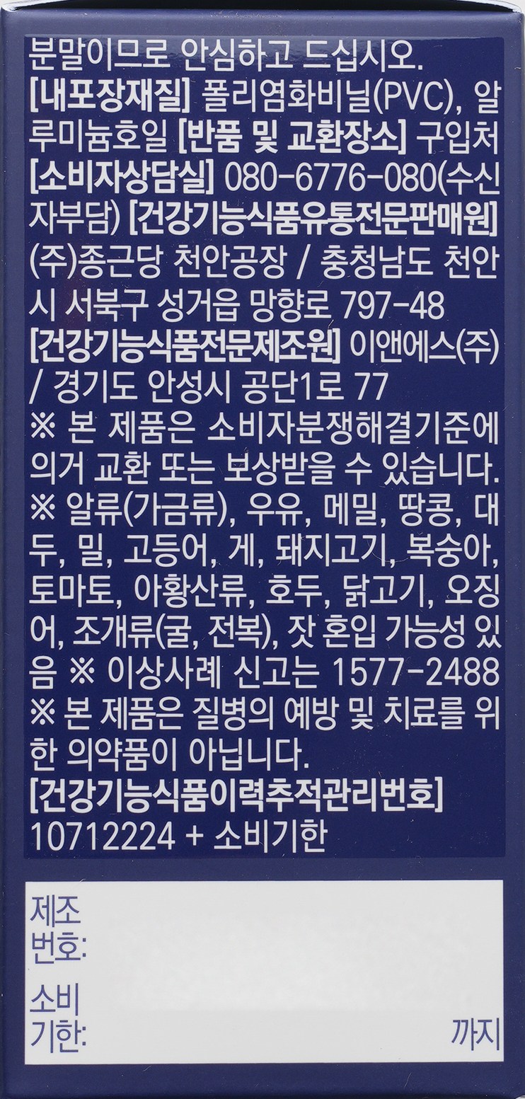 | 「건강기능식품에 관한 법률」에 따른 유전자변형건강기능식품 표시 | 상품페이지 참고 |