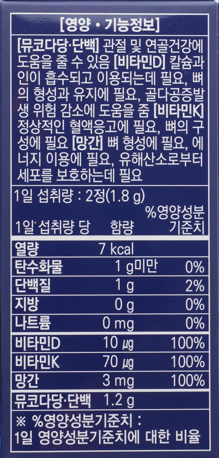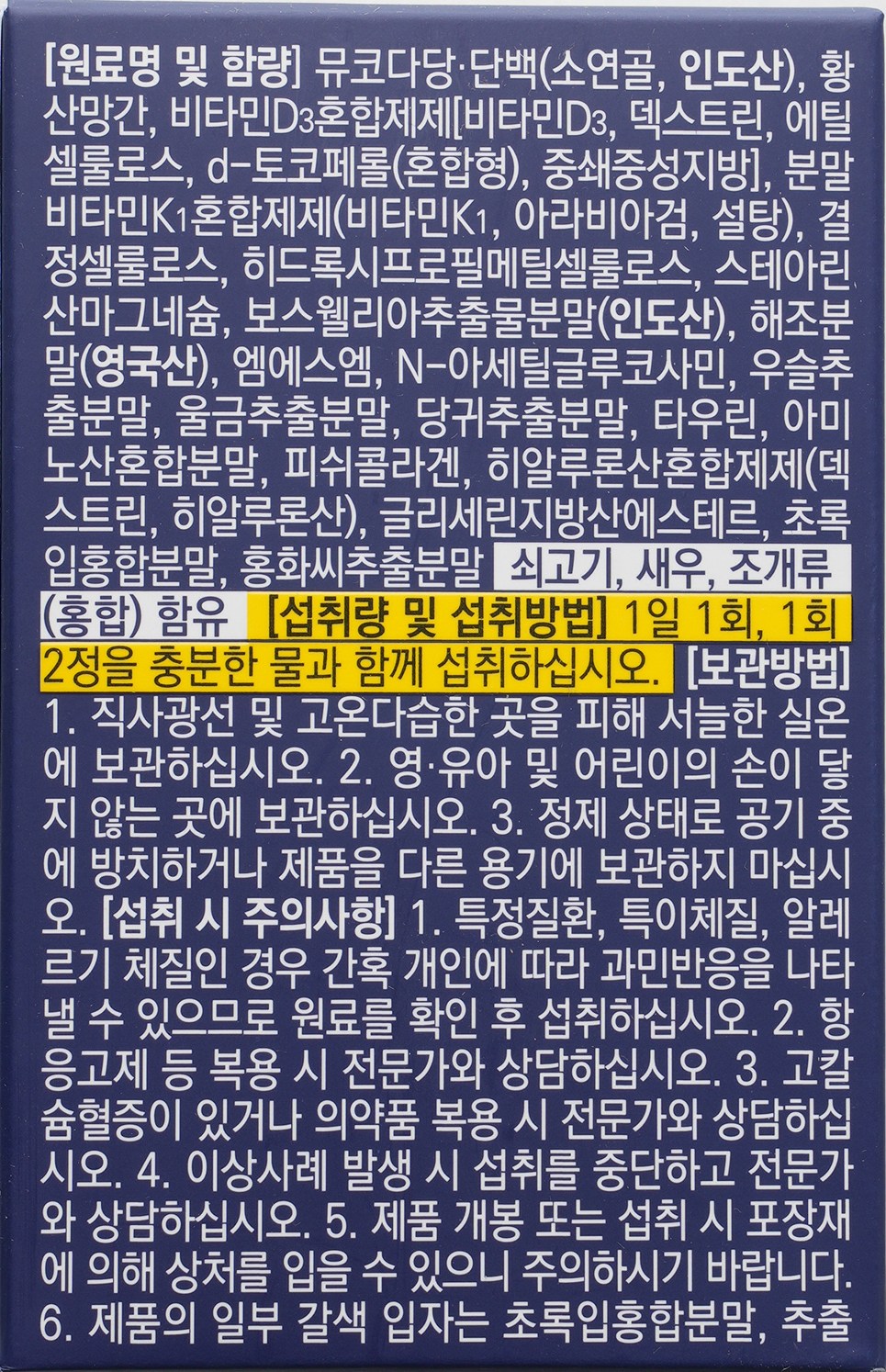 | 섭취량, 섭취방법 및 섭취 시 주의사항 및 부작용 가능성 | 상품페이지 참고 |