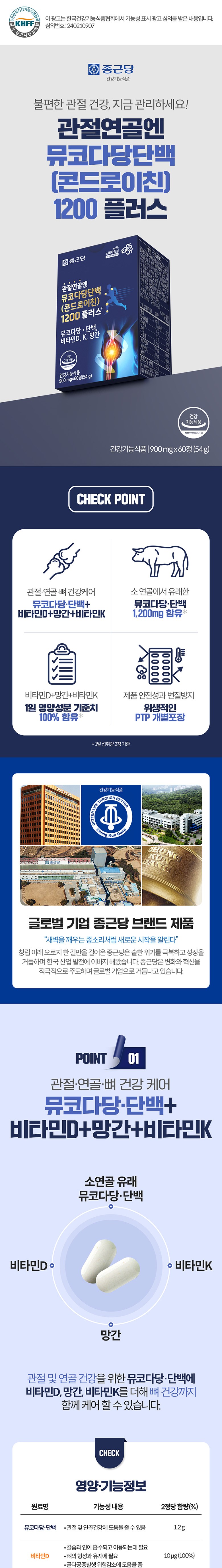 - 종근당 관절연골엔 뮤코다당단백 콘드로이친 1200 플러스, 60정, 2개