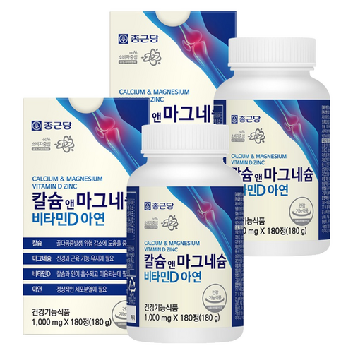 - 종근당 칼슘 앤 마그네슘 비타민D 아연, 180정, 2개