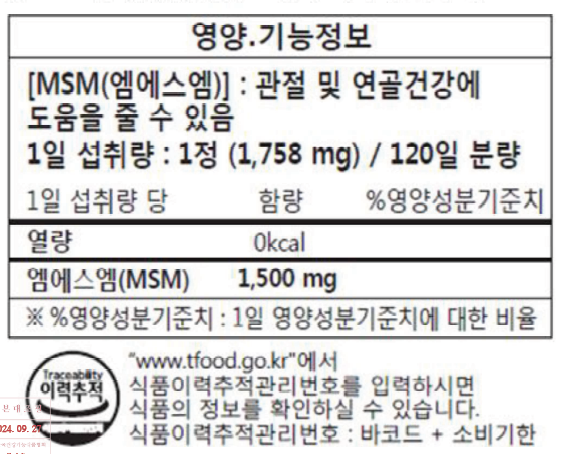 - 닥터스베스트 엠에스엠 1500, 120정, 1개