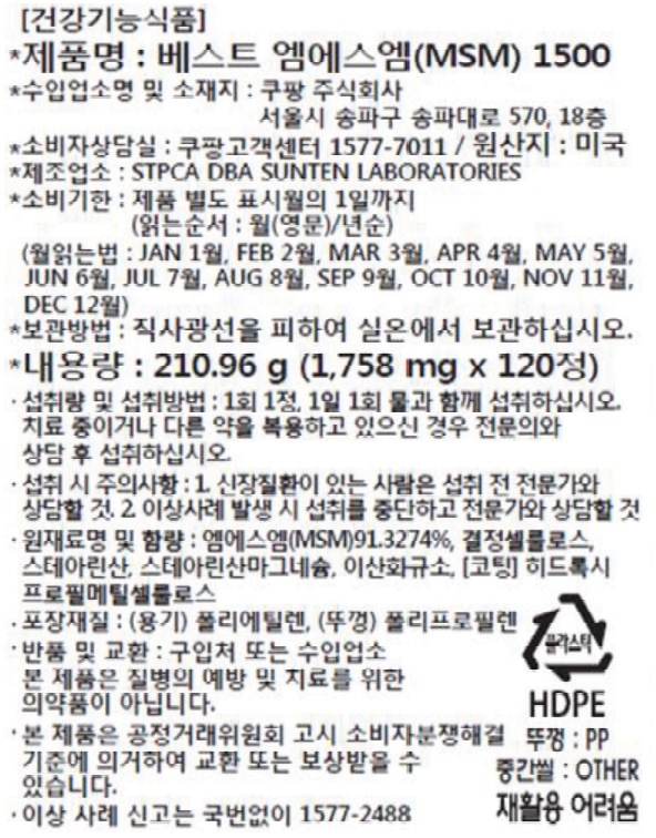 | 수입 건강기능식품의 경우 [수입식품안전관리특별법에 따른 수입신고를 필함]의 문구 | 상품페이지 참고 |