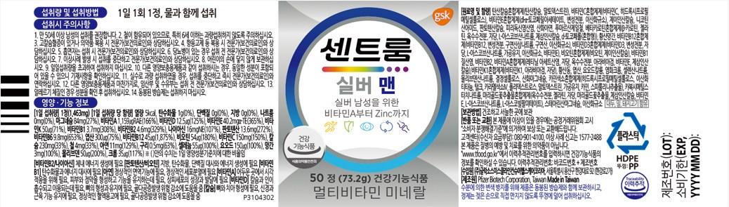 - 센트룸 실버 맨 멀티비타민 미네랄, 50정, 1개