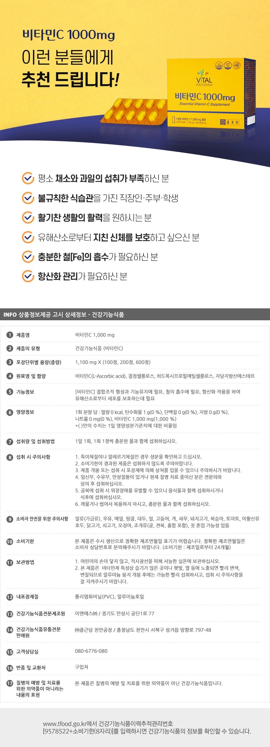 - 바이탈프로그램 비타민C 1000mg, 600정, 1개