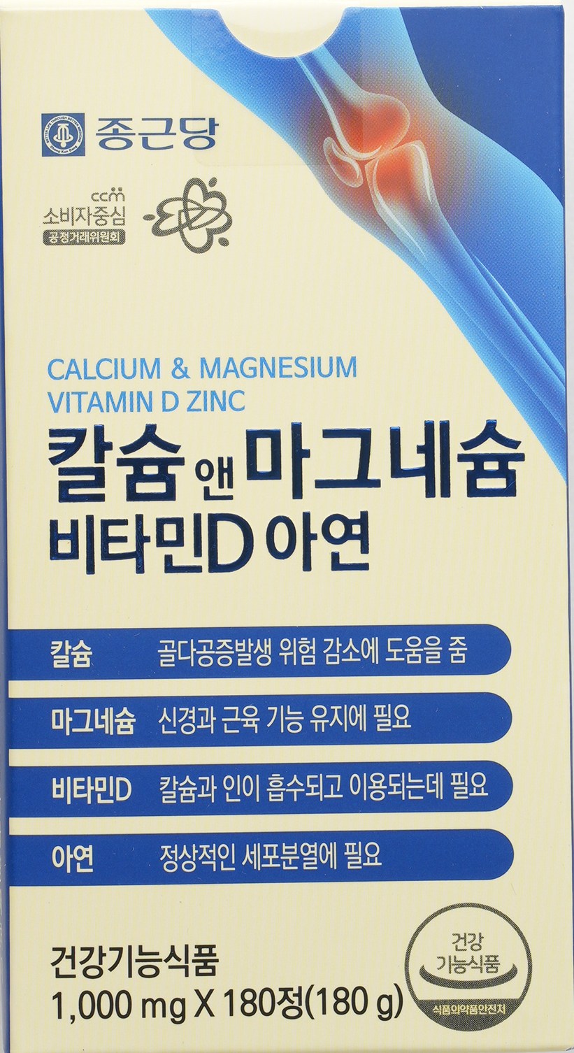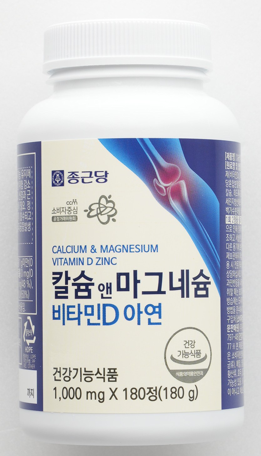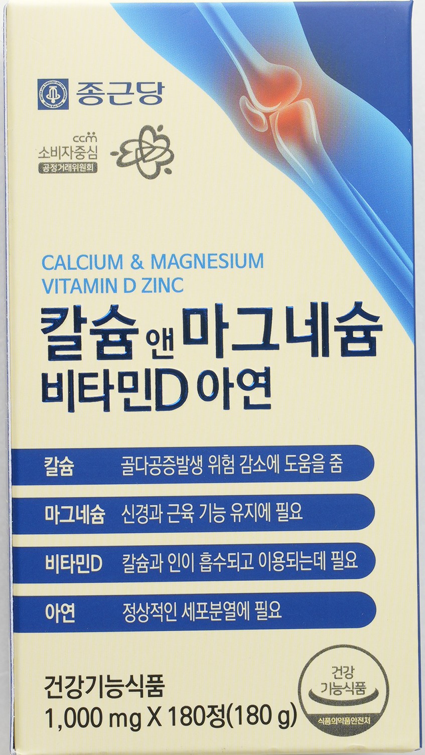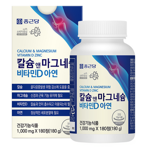 - 종근당 칼슘 앤 마그네슘 비타민D 아연, 180정, 1개