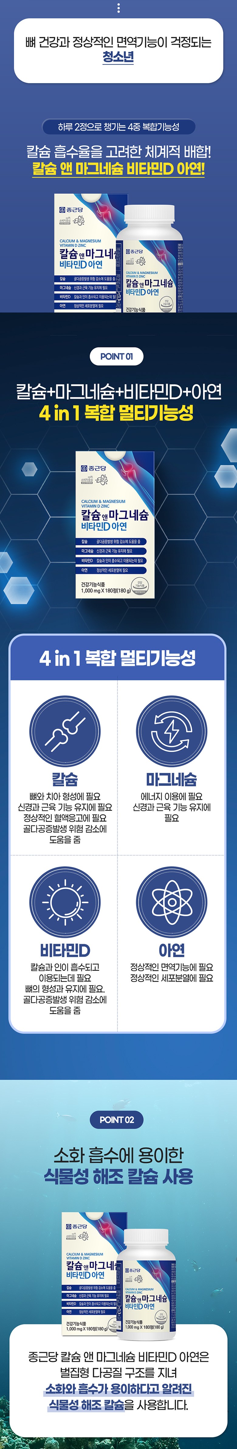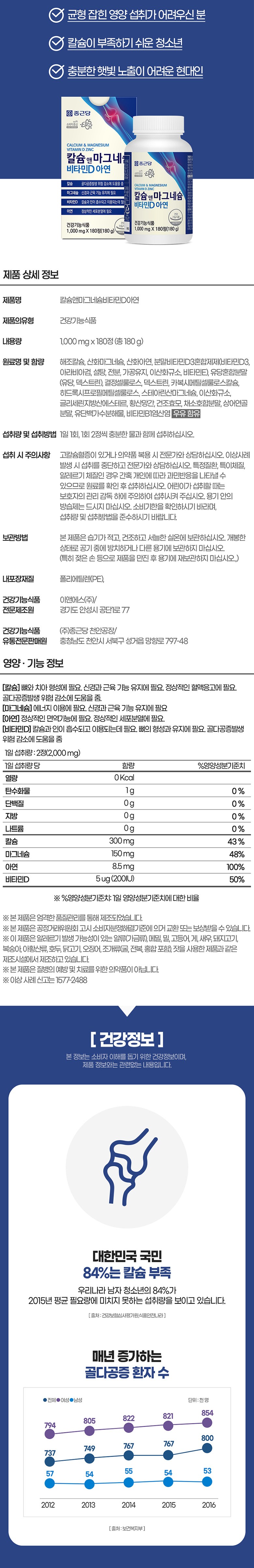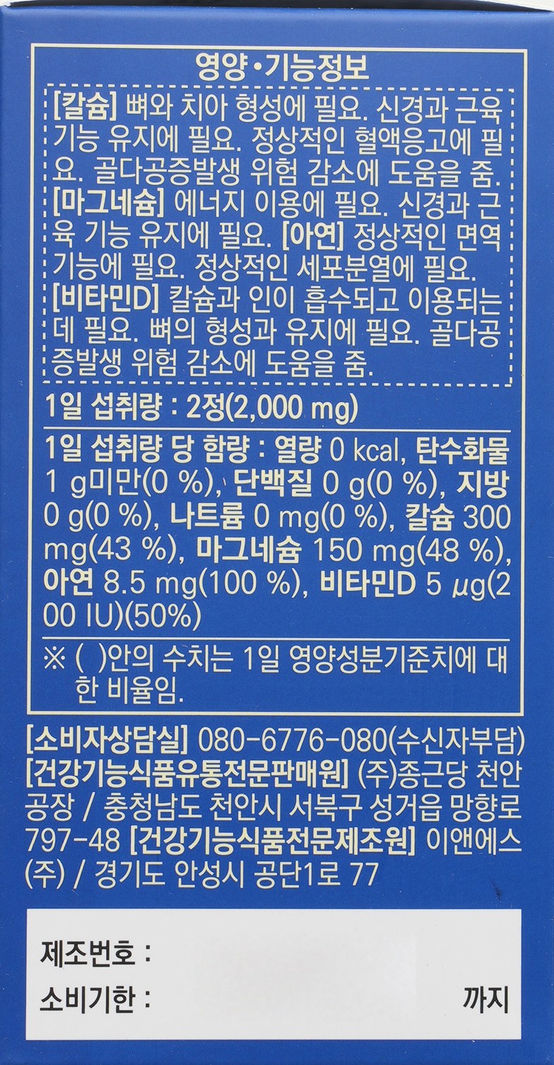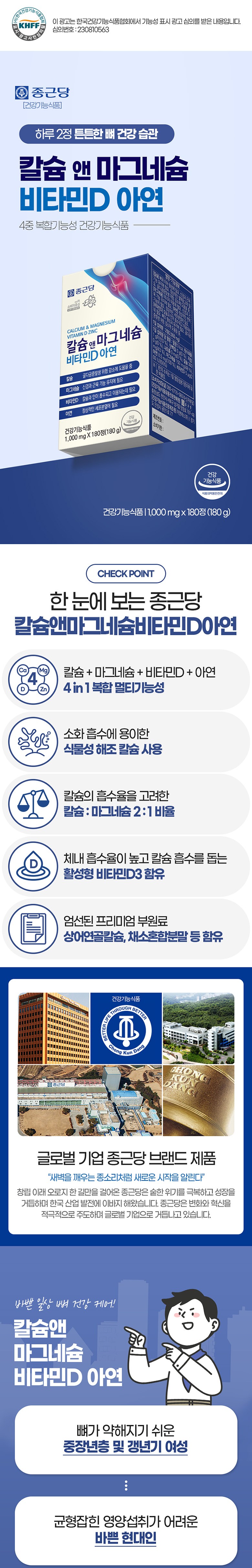 - 종근당 칼슘 앤 마그네슘 비타민D 아연, 180정, 1개