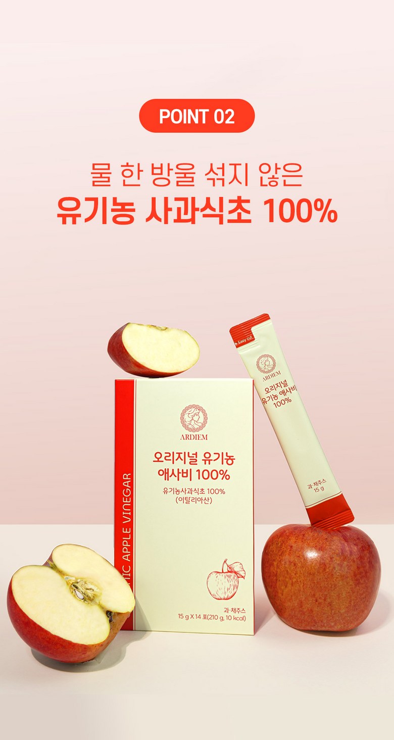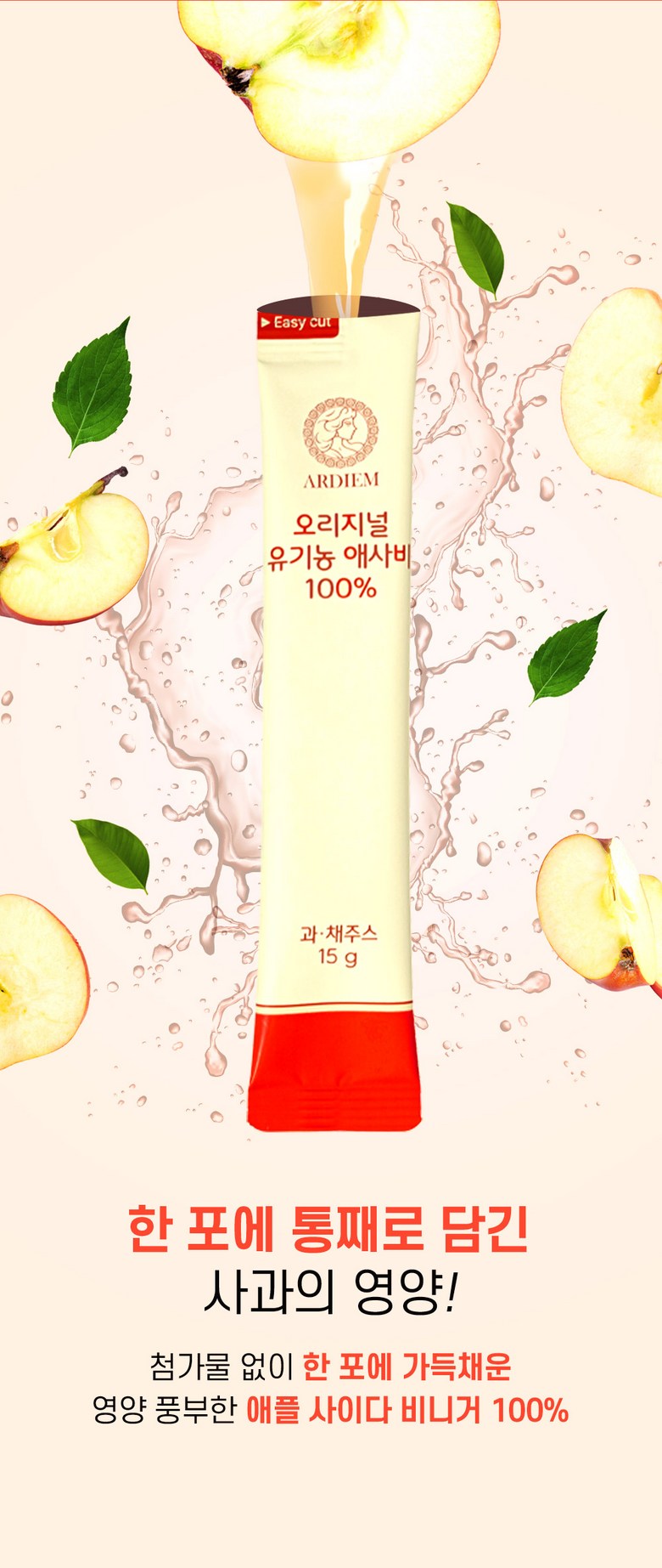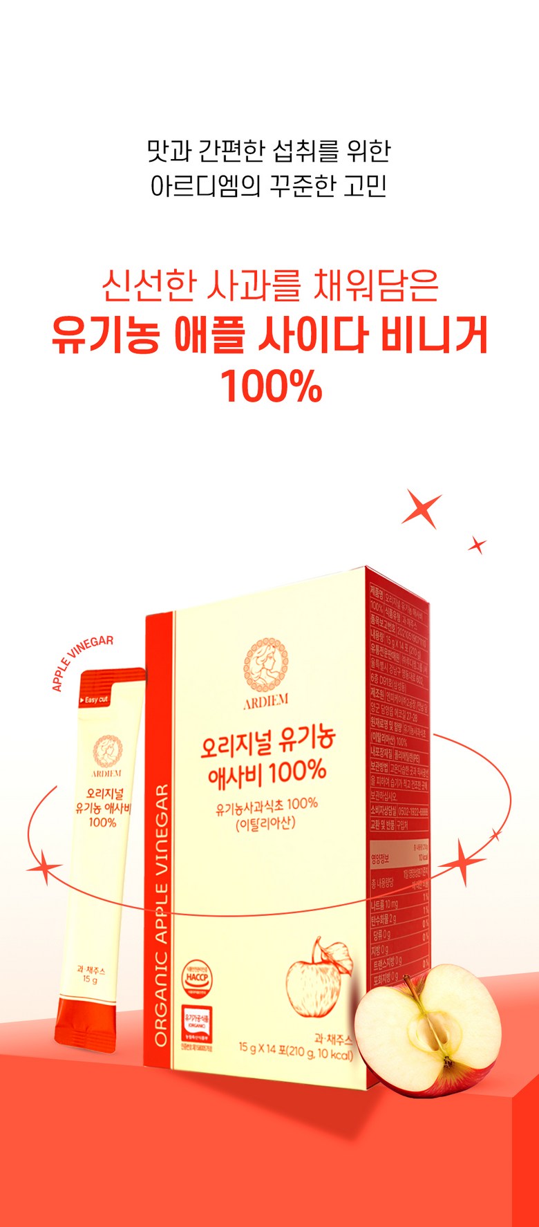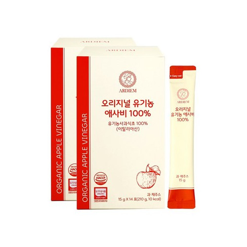 - 아르디엠 오리지널 유기농 애사비 100% 애플사이다비니거 스틱 14회분, 2개, 210ml