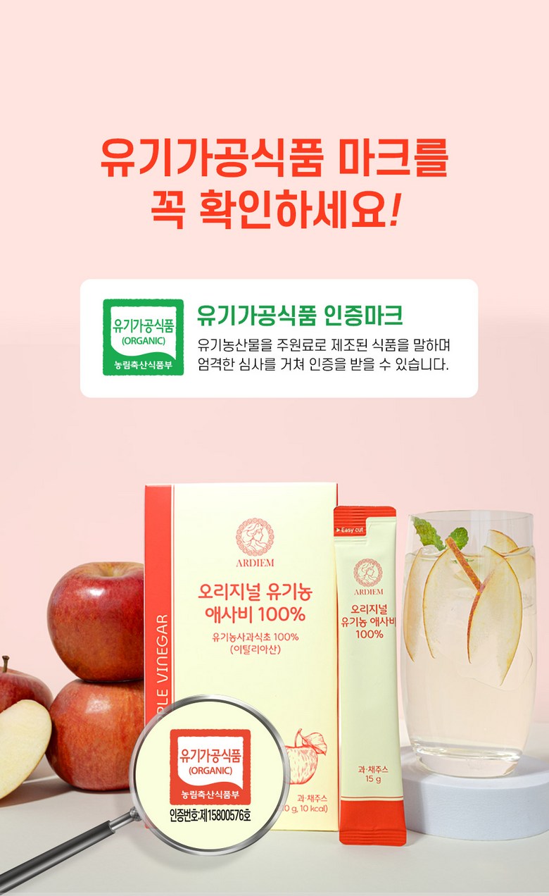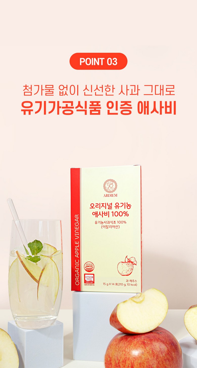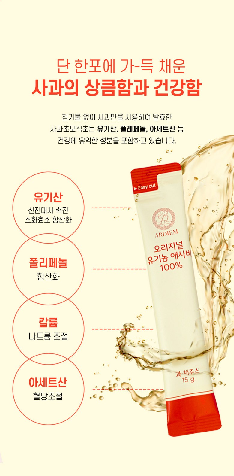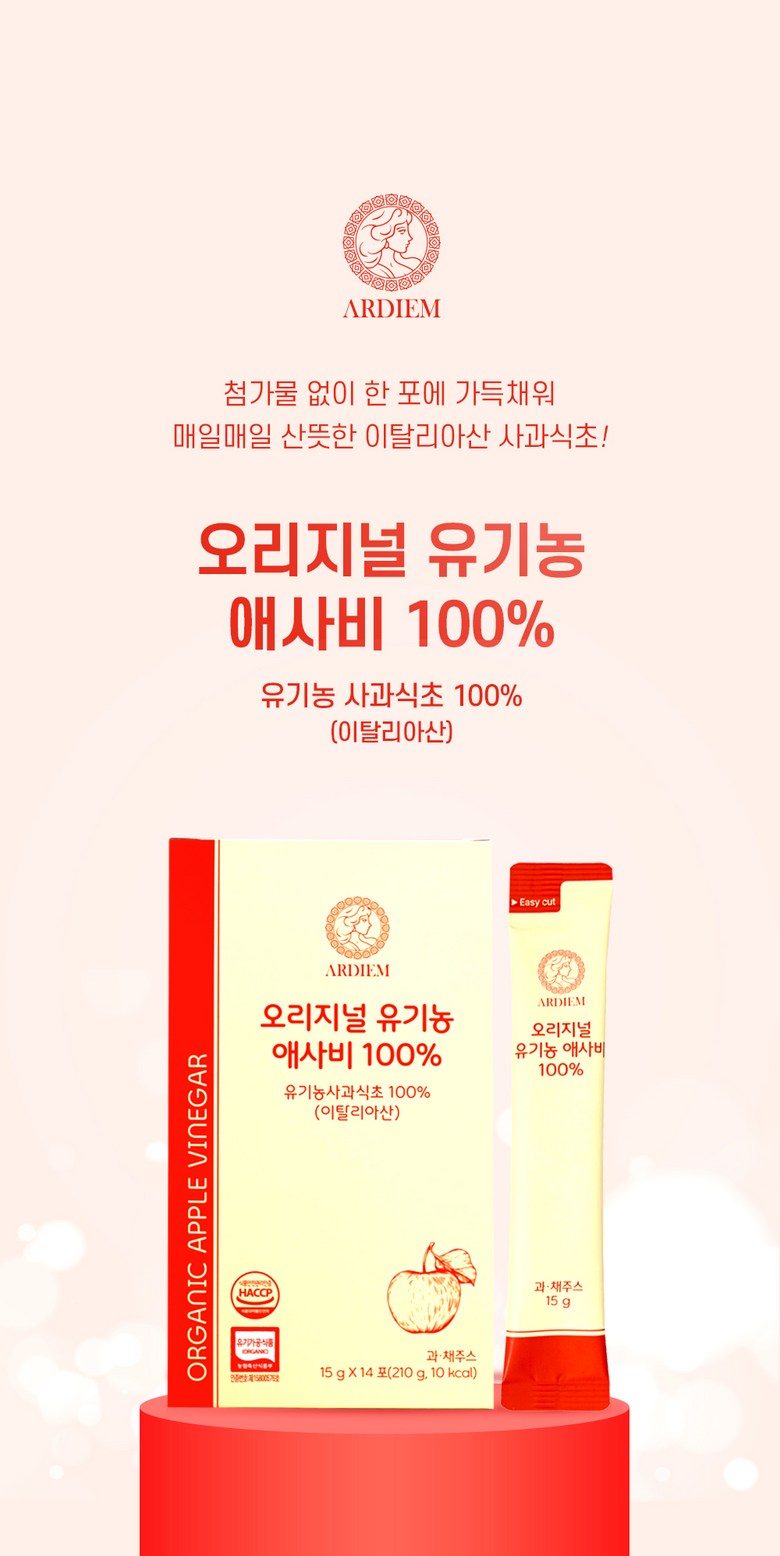 - 아르디엠 오리지널 유기농 애사비 100% 애플사이다비니거 스틱 14회분, 2개, 210ml