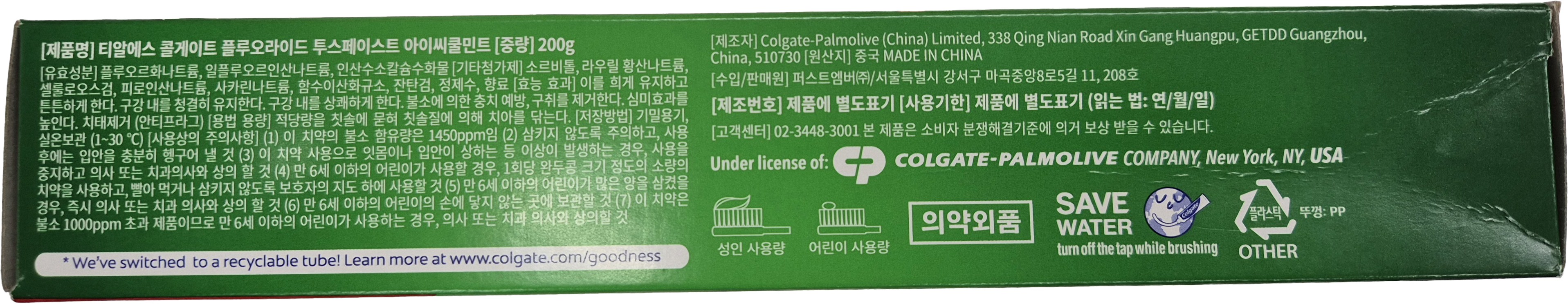 - 콜게이트 아이씨 쿨민트 치약, 200g, 2개