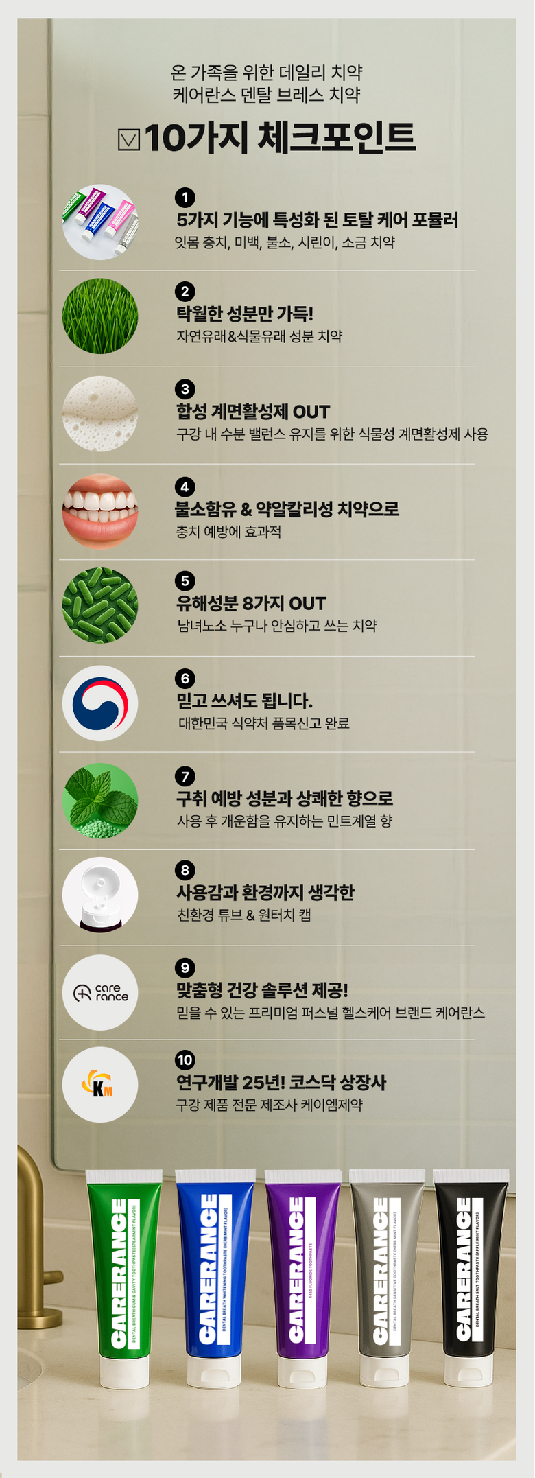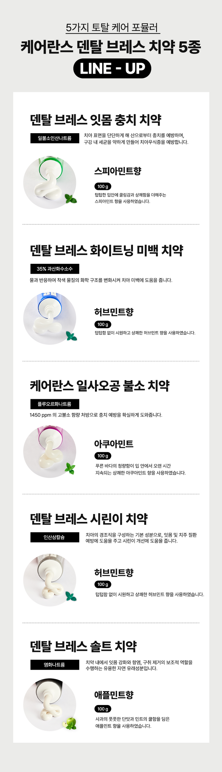 - [잇몸/충치/입냄새] 케어란스 덴탈 브레스 잇몸 충치 치약 (스피아민트향), 100g, 10개