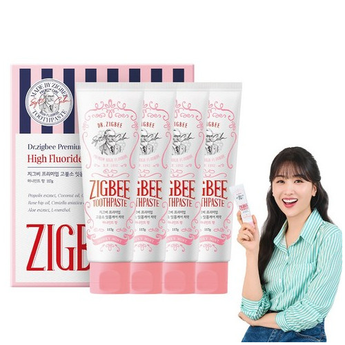 - 치석제거 35% 지그비 대용량 고불소 잇몸케어 치약 허니민트향, 4개, 117g