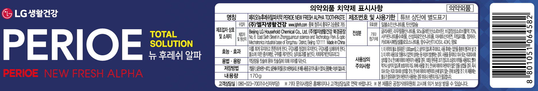 - 페리오 뉴 후레쉬 알파 치약, 170g, 2개