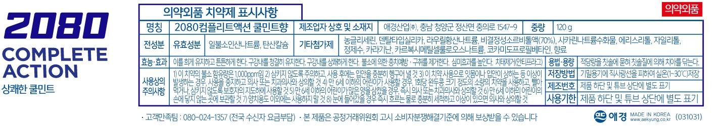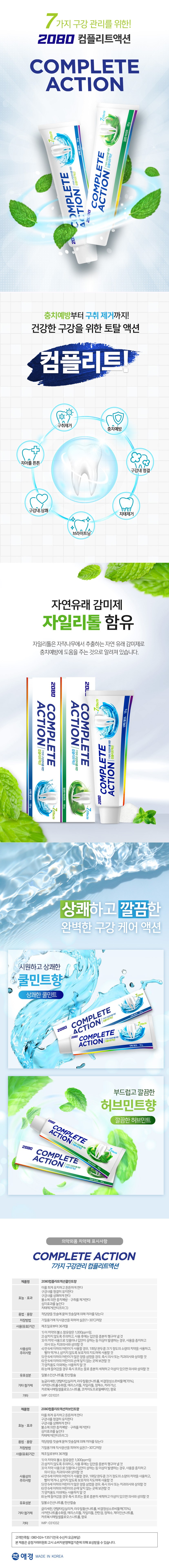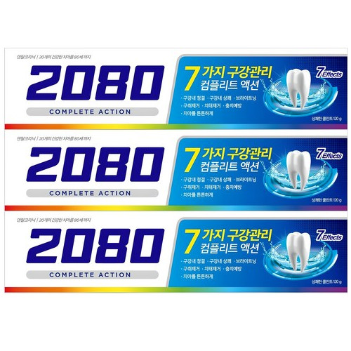 - 2080 컴플리트액션 쿨민트향 치약, 120g, 3개