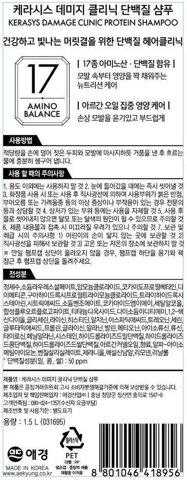 - 케라시스 데미지 클리닉 단백질 샴푸, 1.5L, 1개