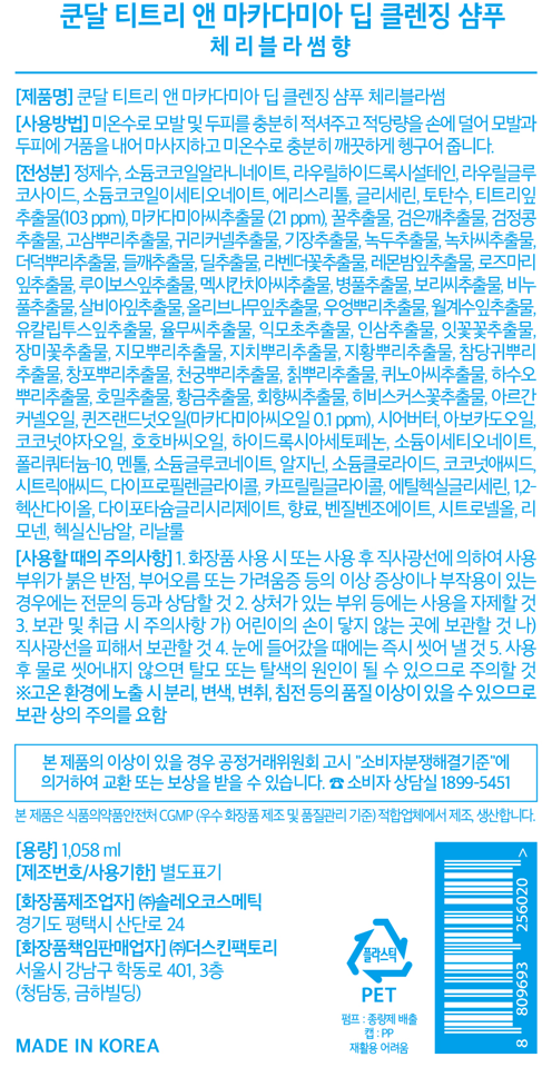 - 쿤달 티트리 앤 마카다미아 딥 클렌징 샴푸 체리블라썸, 1.058L, 2개
