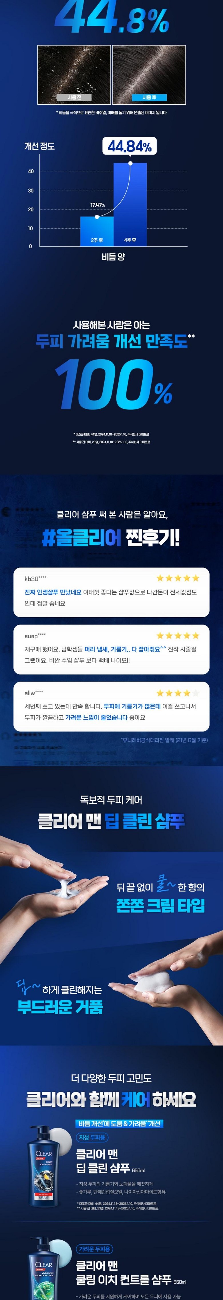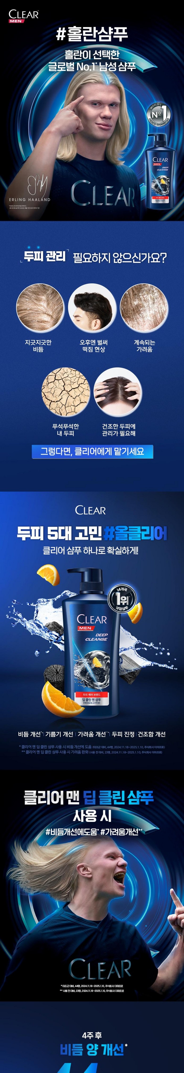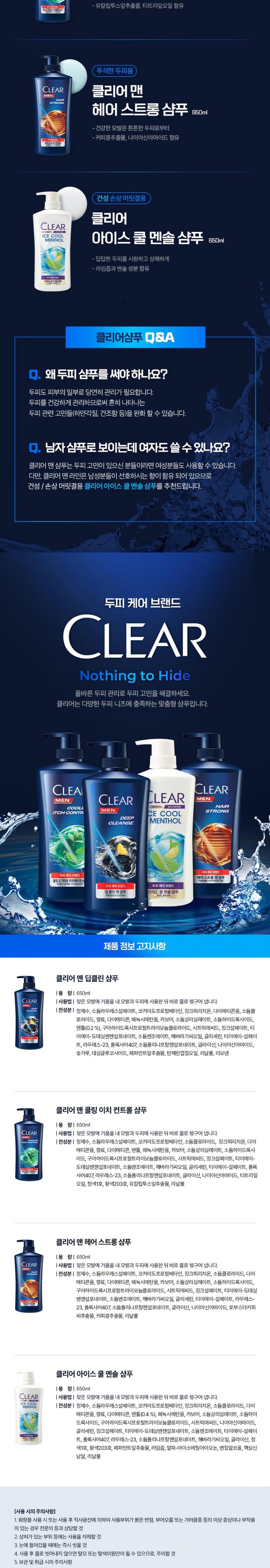 - 클리어 맨 쿨링 이치 컨트롤 샴푸, 650ml, 2개