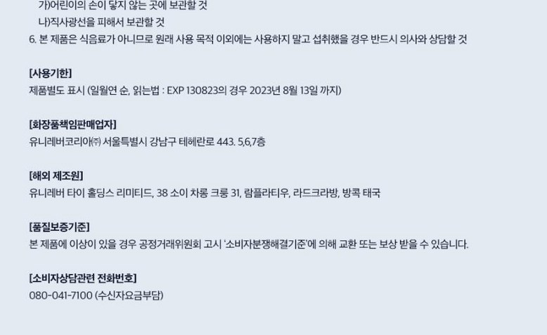 | 제조연월 및 유통기한 | 상품페이지 참고 |