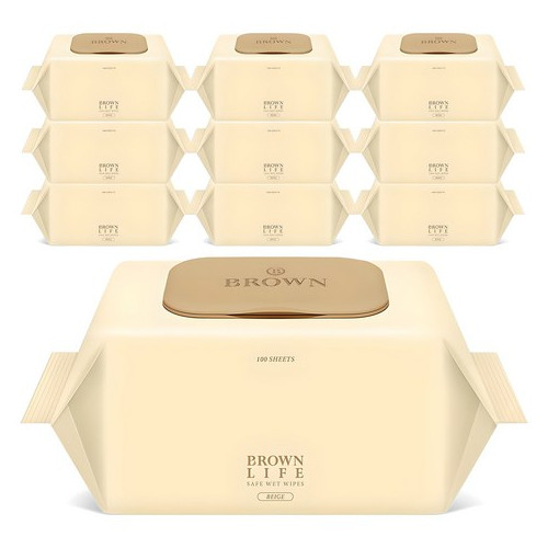 - 브라운라이프 베이지 엠보싱 대용량 물티슈 캡형 100매 10개입