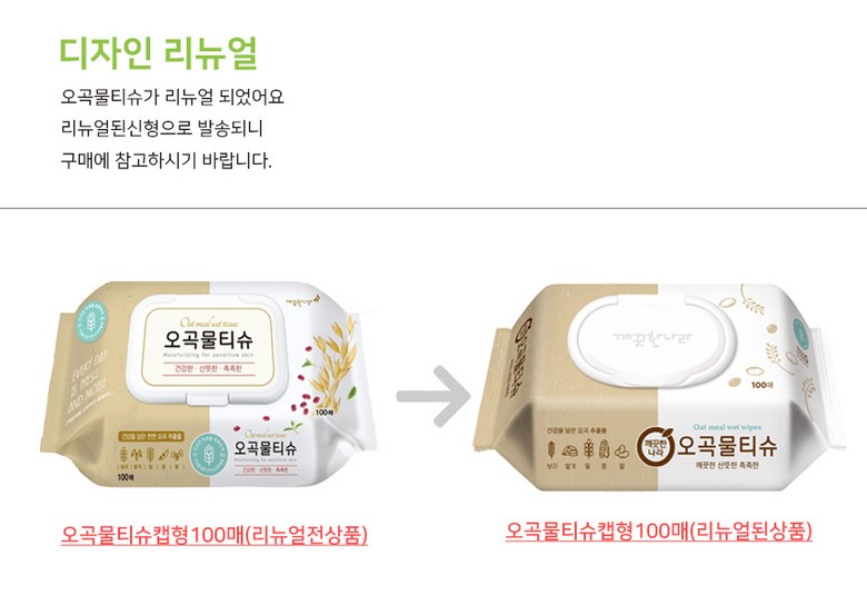 - 깨끗한나라 오곡물티슈 캡형 100매입 20개 리뉴얼 최신형