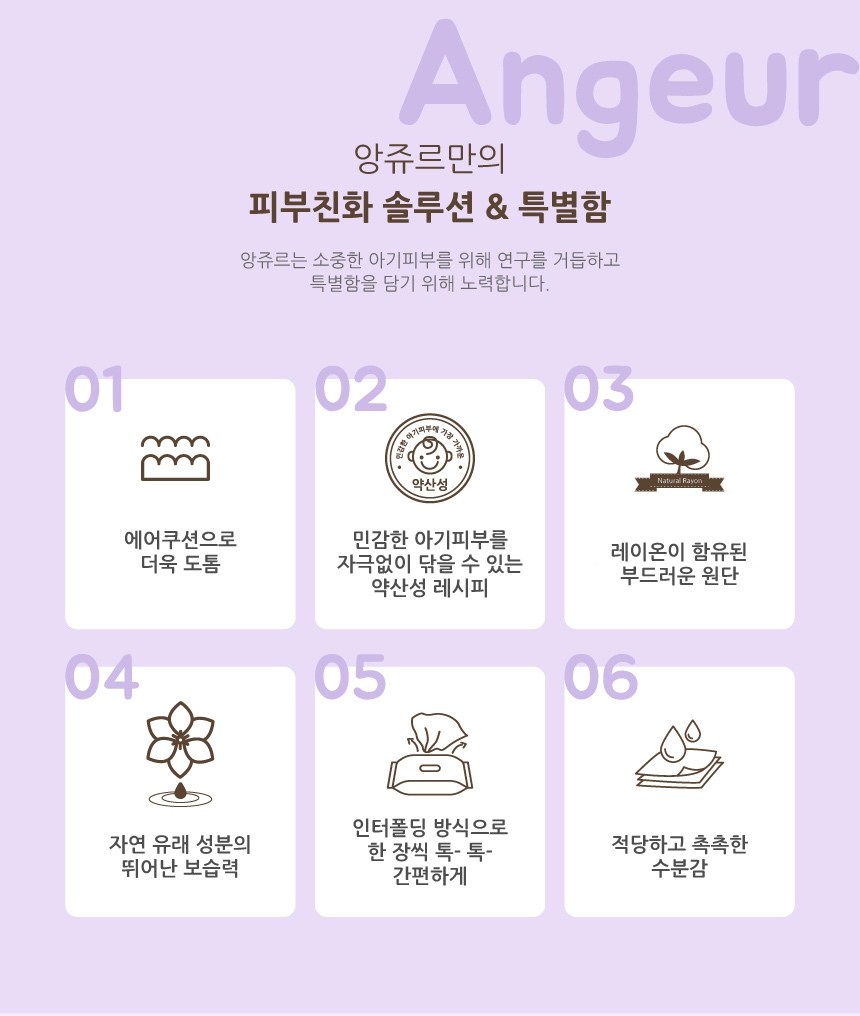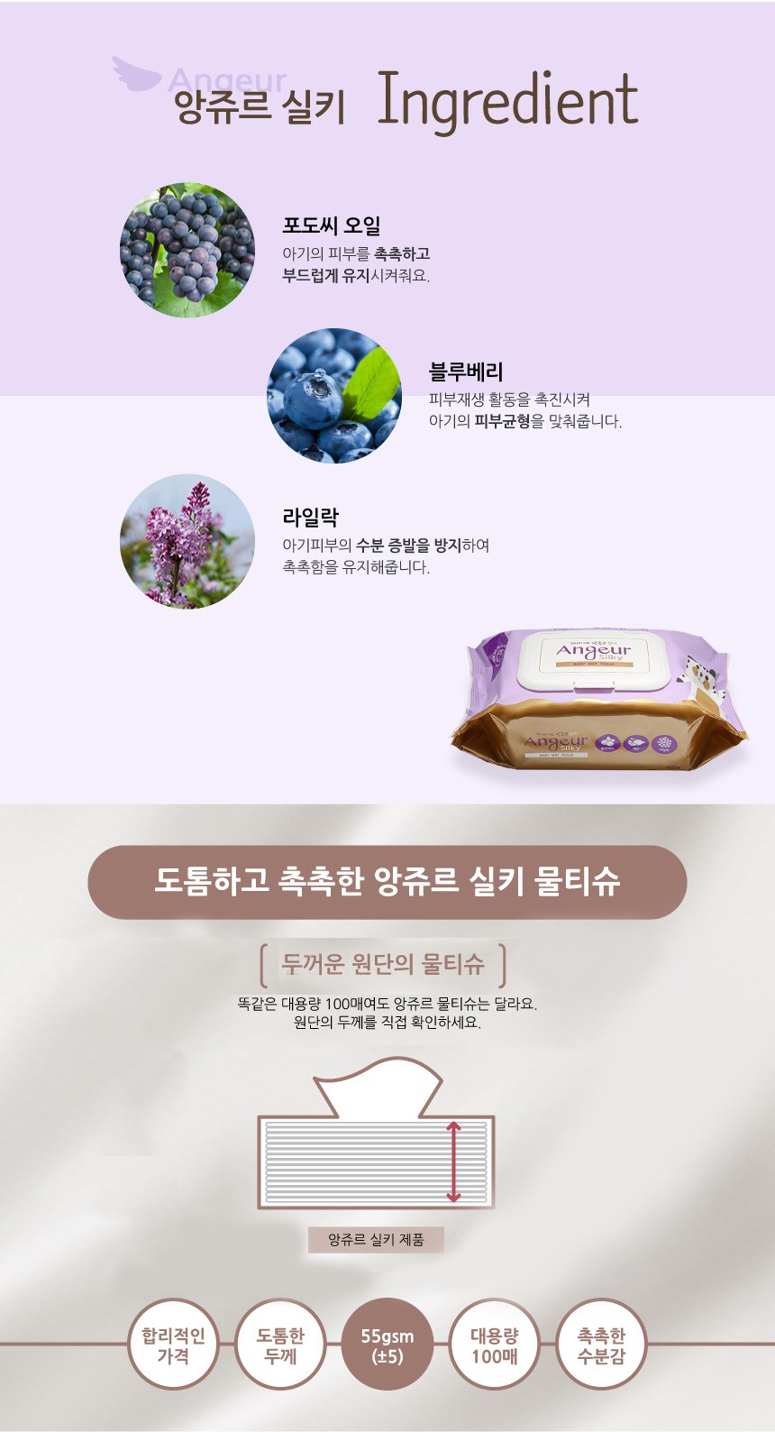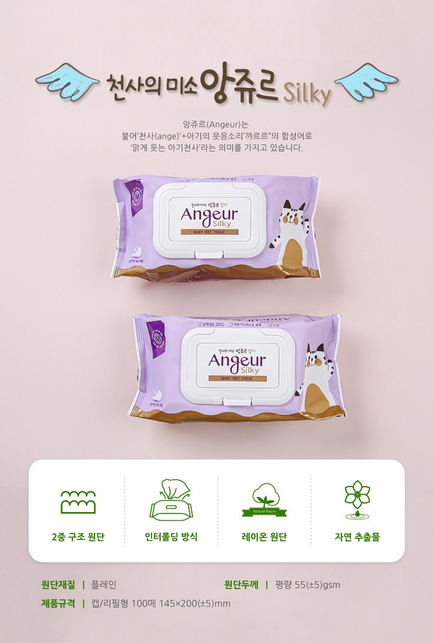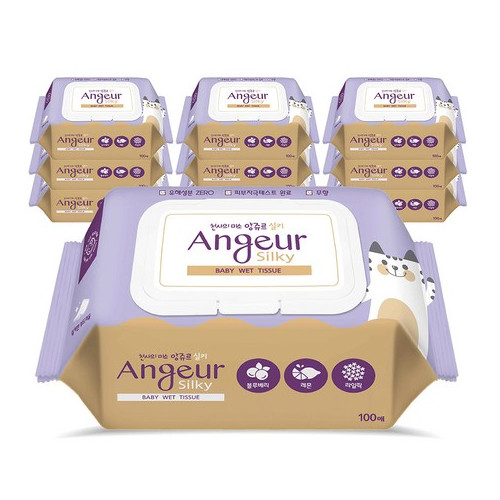 - 앙쥬르 실키 유아물티슈 캡형, 100매, 10개