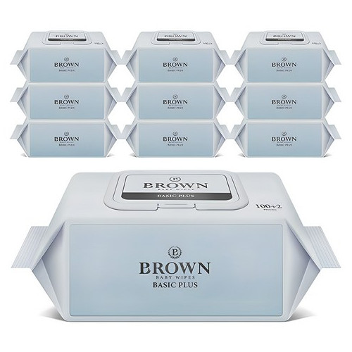 - 브라운 베이직 플러스 아기물티슈 캡형 102매 10개입