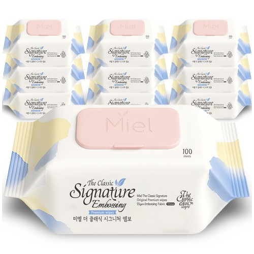- 미엘 더 클래식 시그니처 엠보싱 물티슈 캡형 100매 10개입