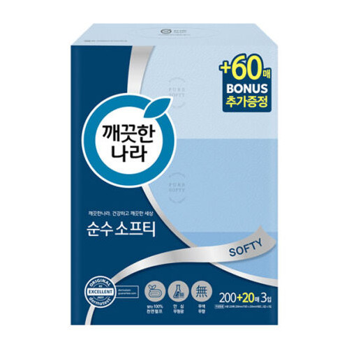 [깨끗한나라] 순수 소프티 미용티슈 200+20매x3입