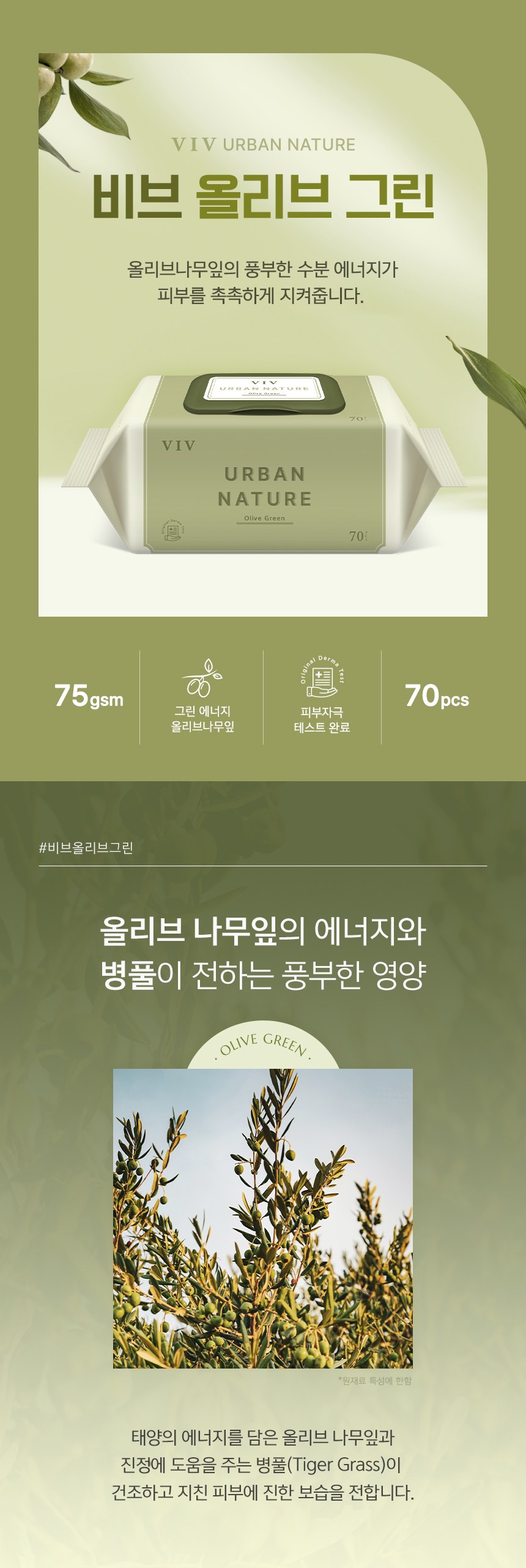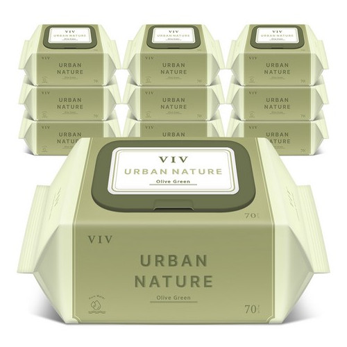 - 비브어반네이처 저자극 아기물티슈 캡형 올리브 그린 70매 10개입