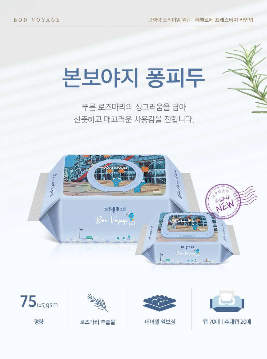 - 페넬로페 본보야지 퐁피두 아기물티슈 캡형 70매 10개입