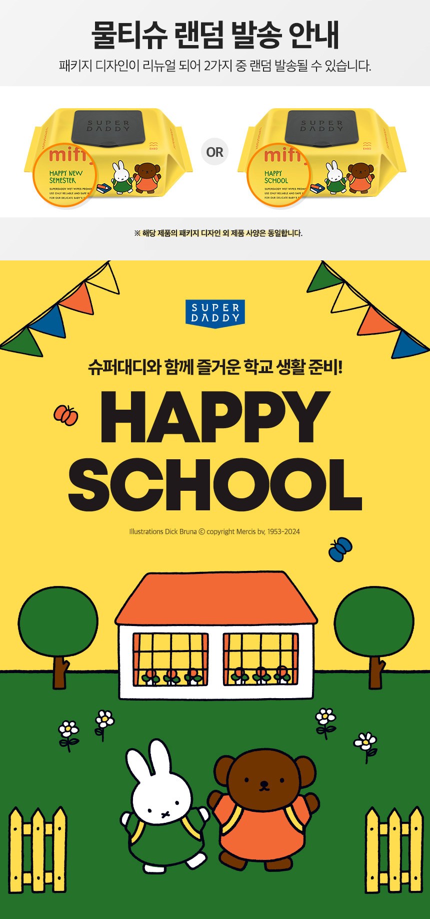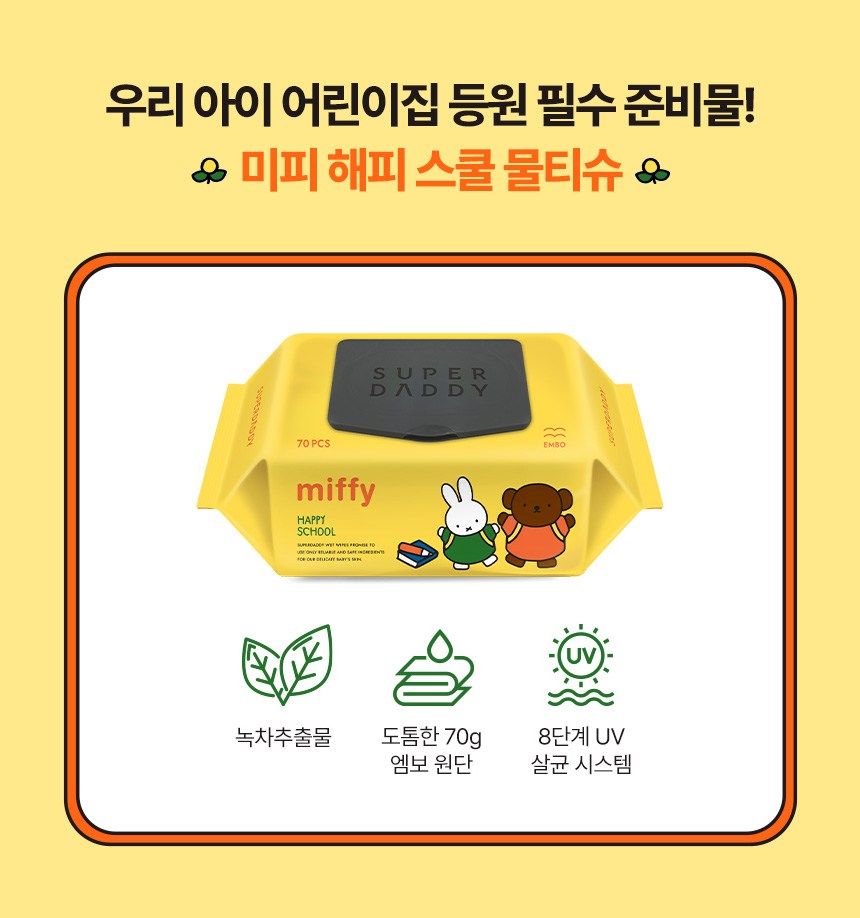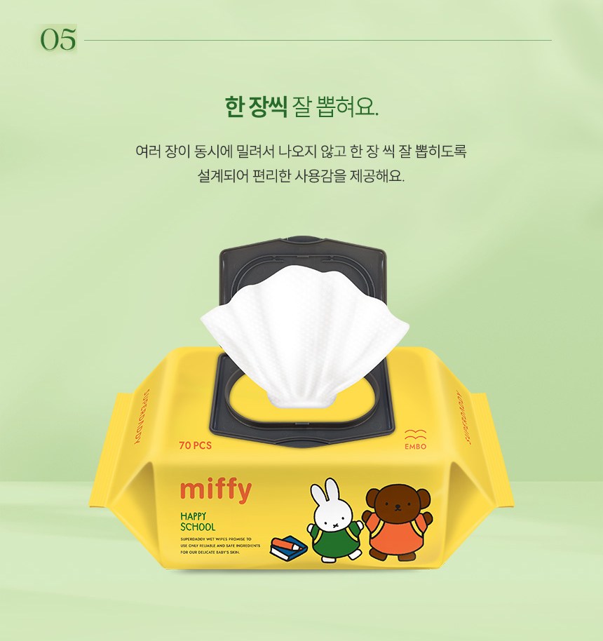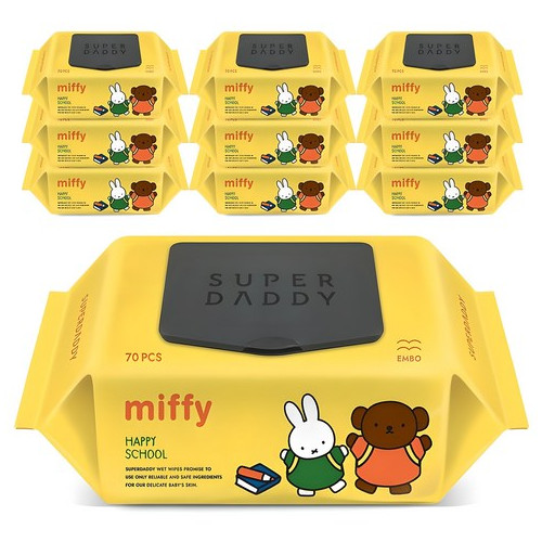 - 슈퍼대디 유아용 미피 해피스쿨 물티슈 엠보싱 캡형 70매 10개입