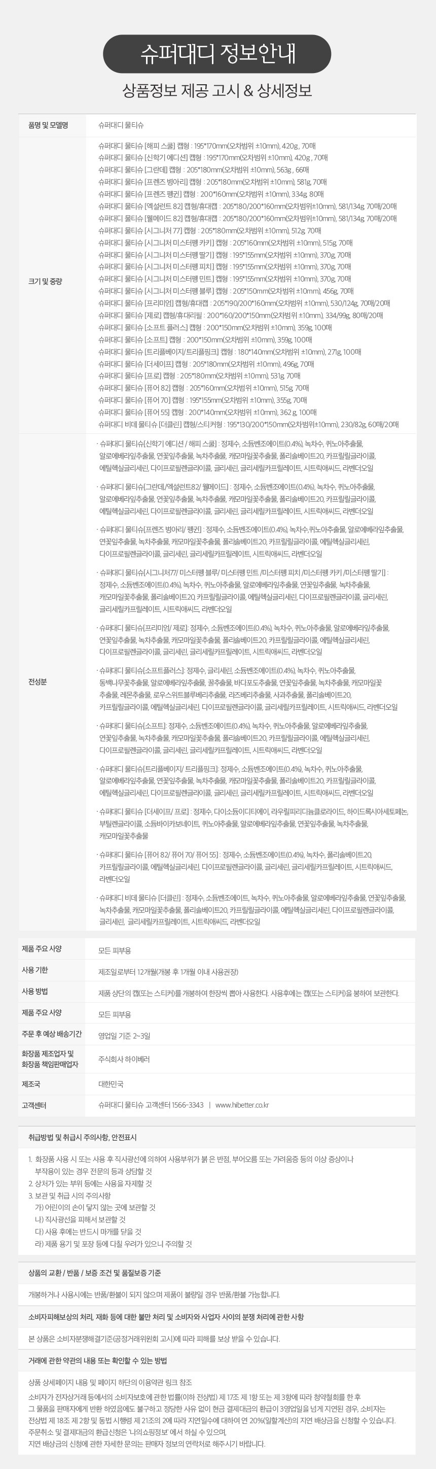 | 중량ㆍ용량ㆍ매수ㆍ크기 | 상품페이지 참고 |
