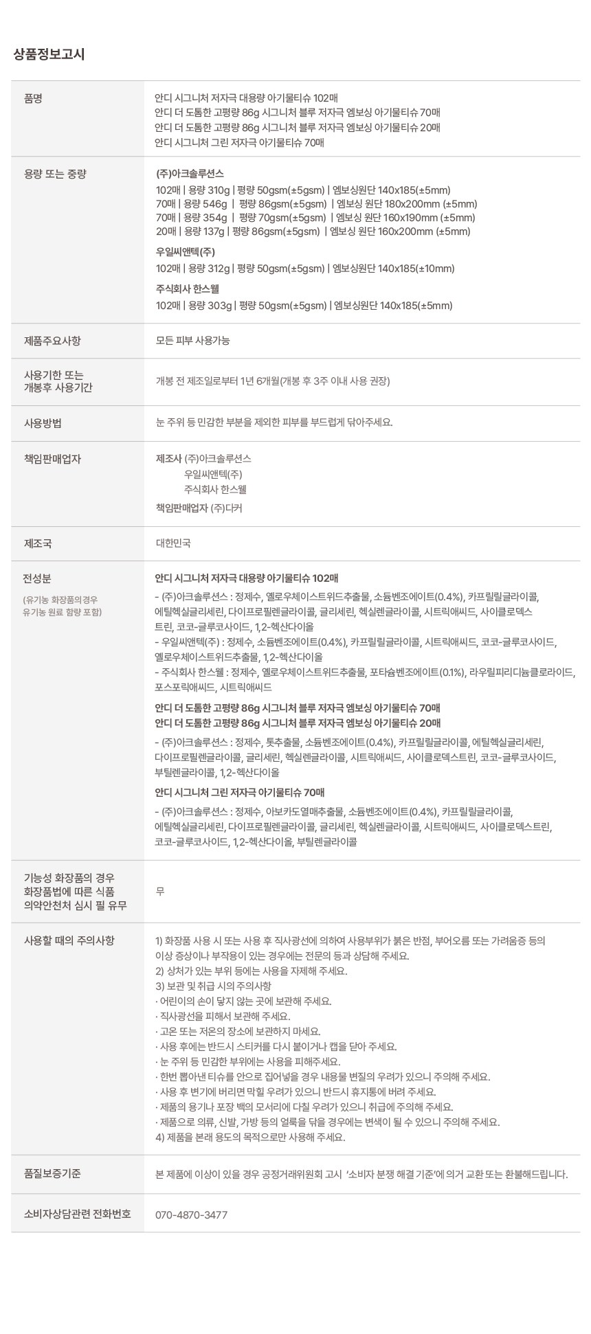 | 중량ㆍ용량ㆍ매수ㆍ크기 | 상품페이지 참고 |