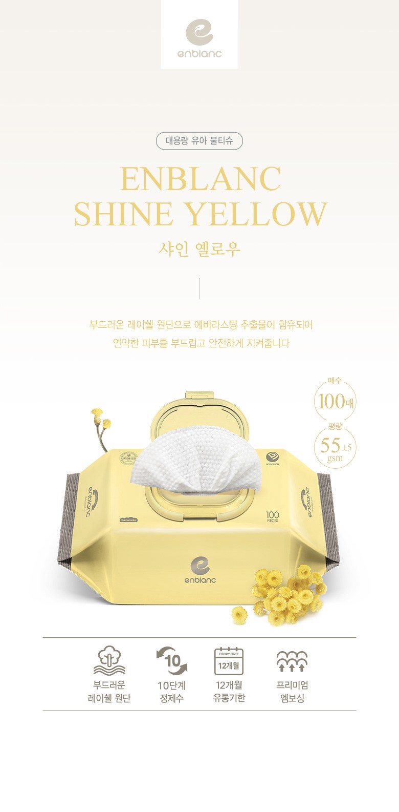 - 앙블랑 샤인 옐로우 유아물티슈 캡형 100매 10개입