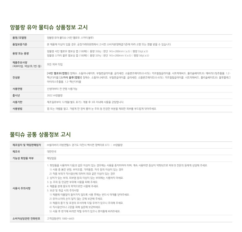 | 중량ㆍ용량ㆍ매수ㆍ크기 | 상품페이지 참고 |