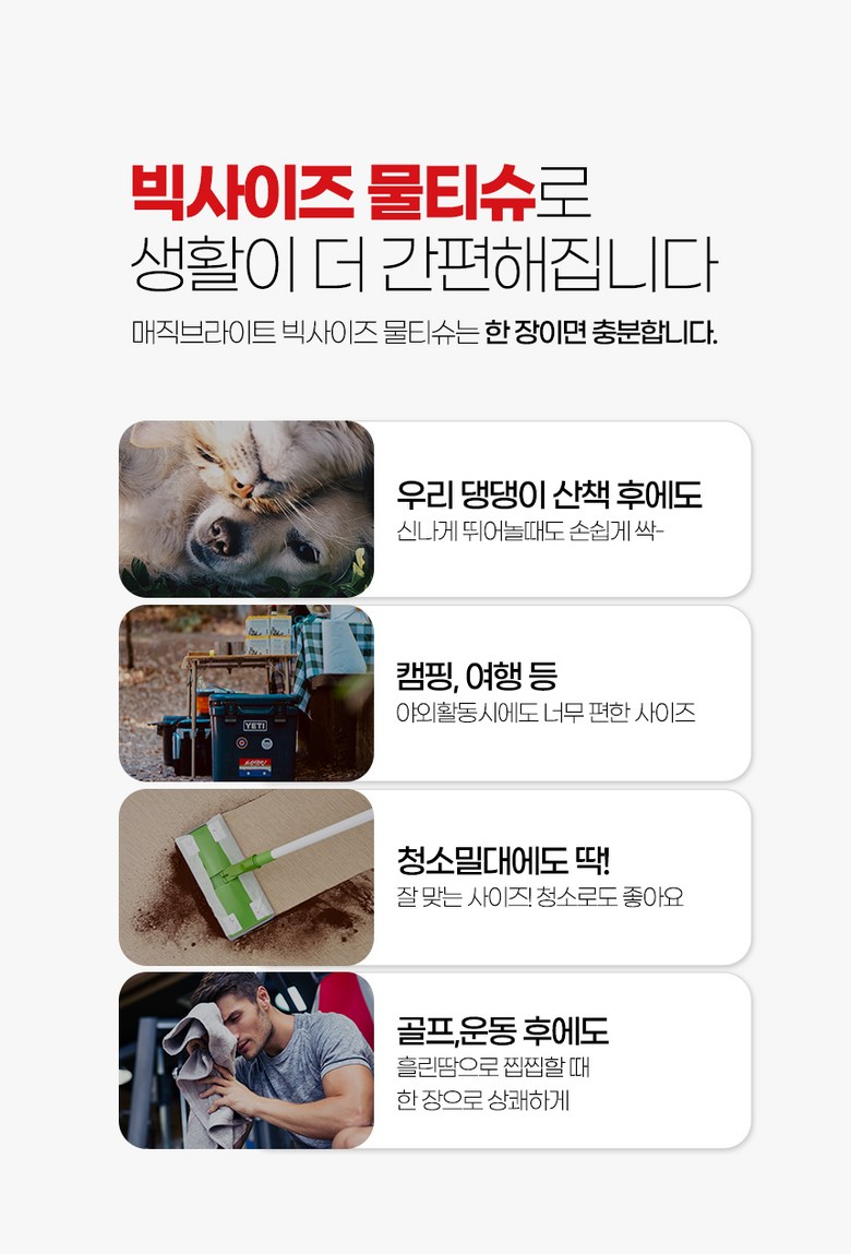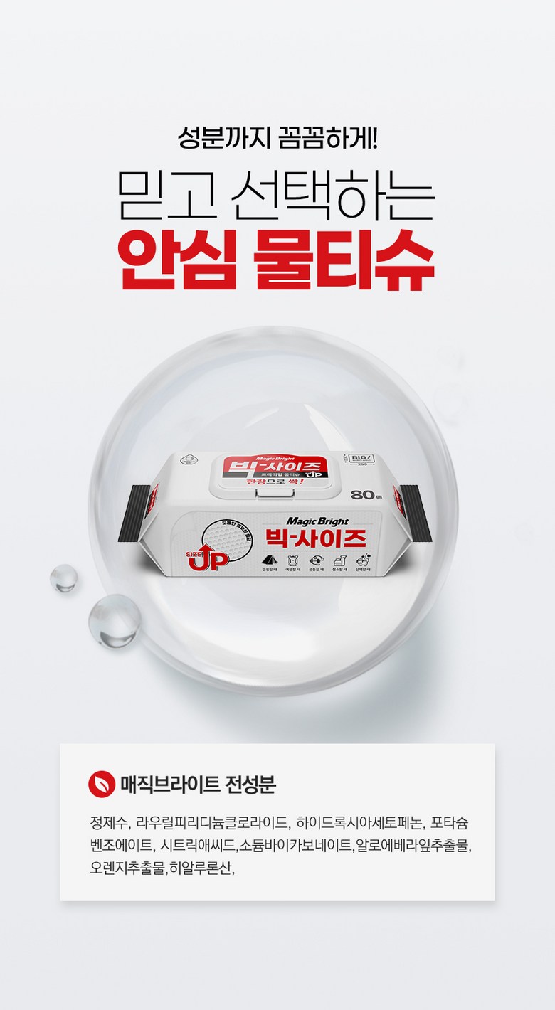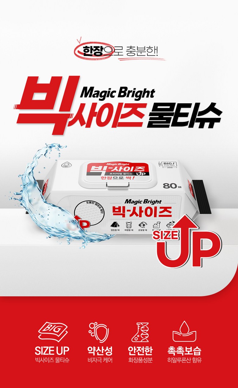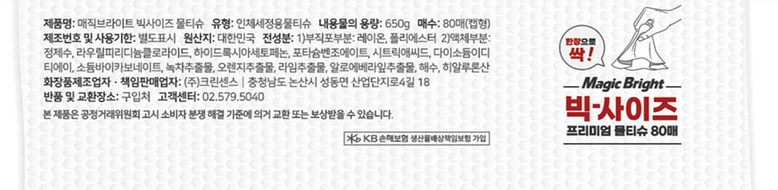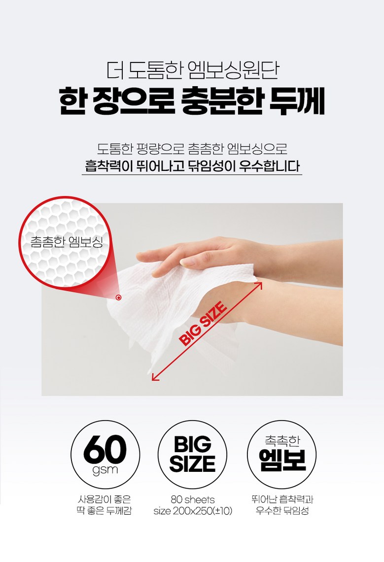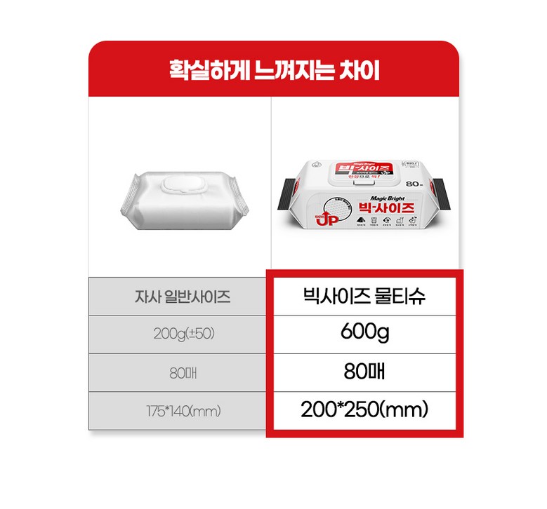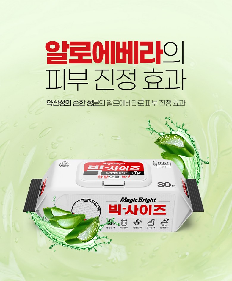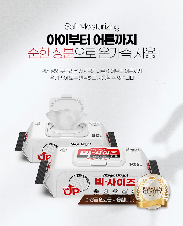 - 매직브라이트 도톰한 엠보싱 빅사이즈 물티슈 캡형 80매 10개입