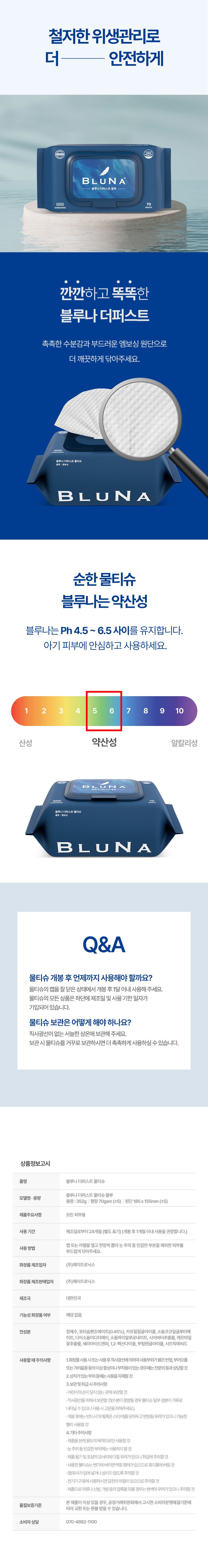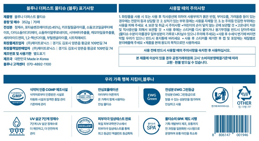 - 블루나 더퍼스트 블루 물티슈 캡형 70매 10개입