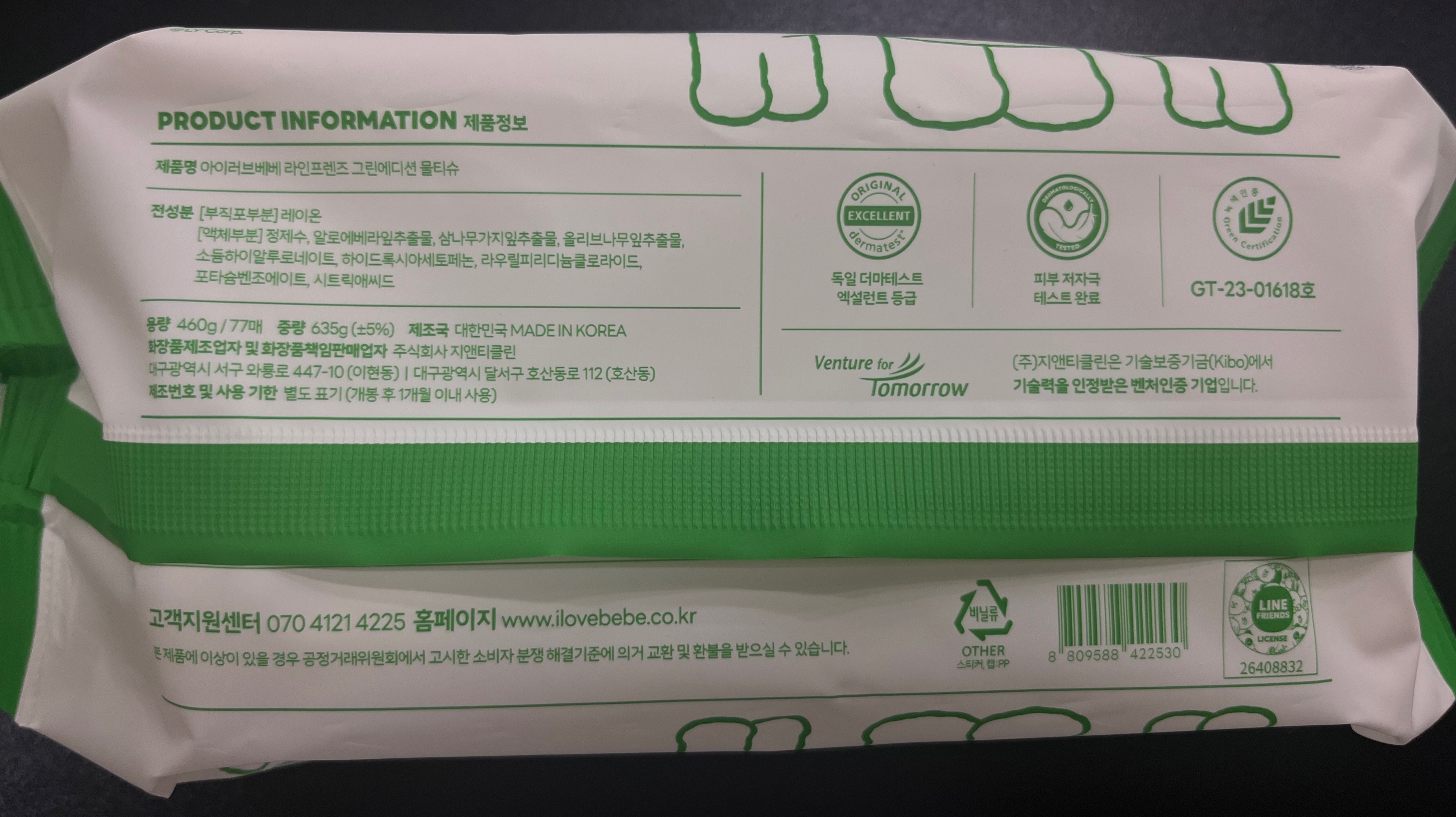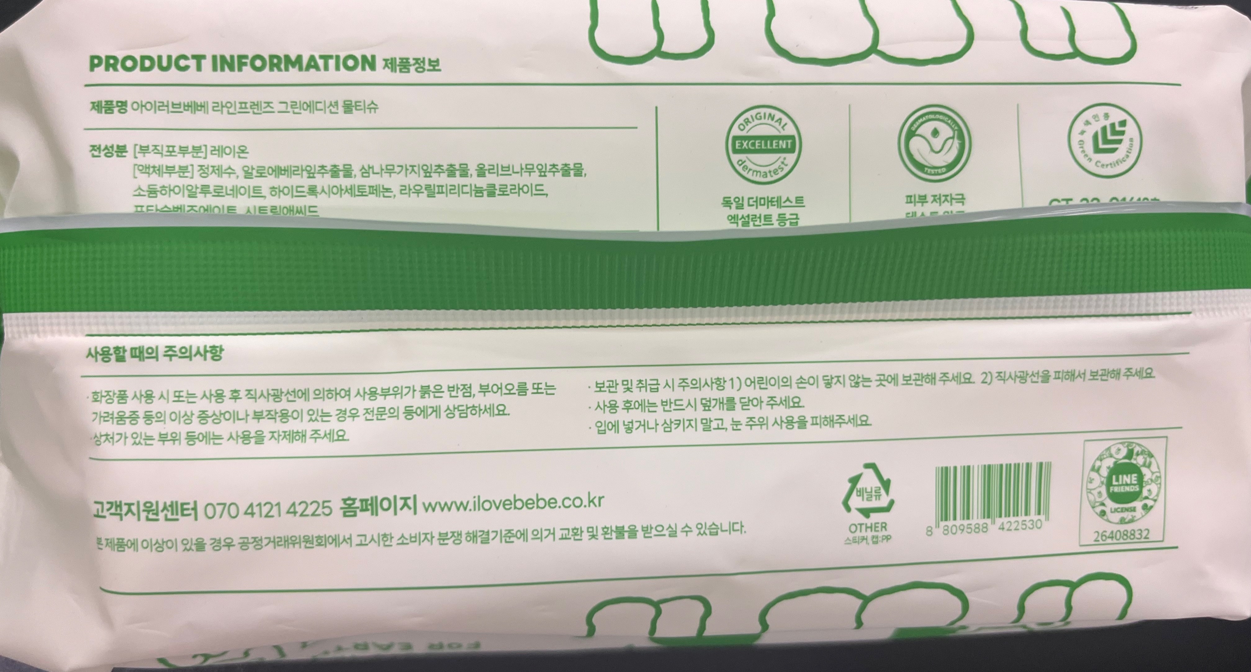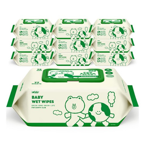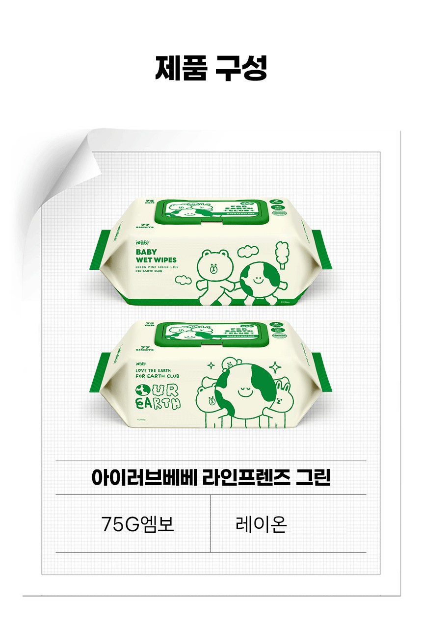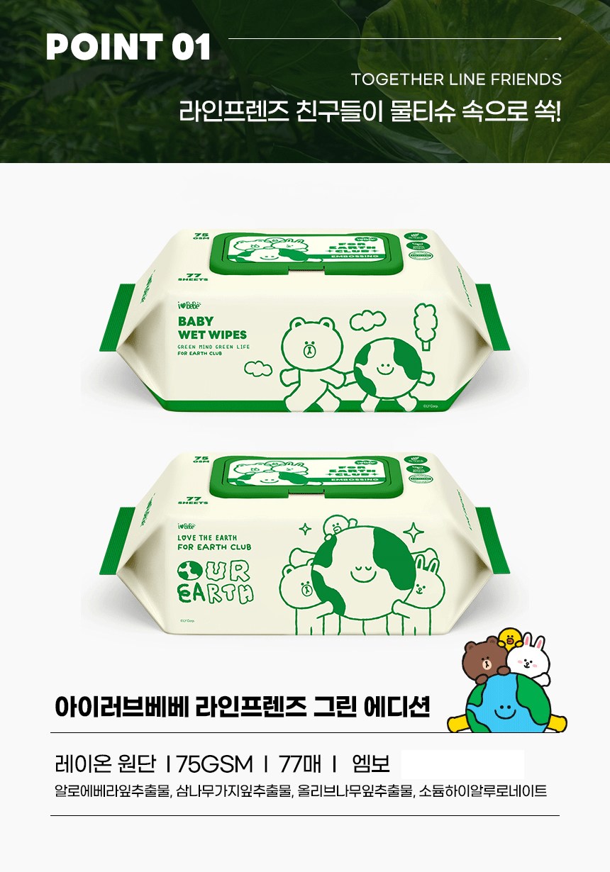 - 아이러브베베 라인프렌즈 그린 에디션 아기물티슈 캡형 77매 10개입